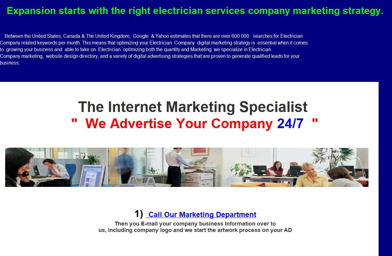 Quote, And We'll Get To Know Your Business To Build A Customized Proposal Transparent Reporting · Request A Custom Proposal · Award-Winning Team Certified Ad Experts Search 1 Electrician Digital Marketing Agency | Owned With our comprehensive electrician marketing system, we use internet marketing to help you attract, capture and engage more restoration jobs while tracking your return on investment. Let us take care of your internet marketing so that you can focus on what you do best. About us Looking for a Marketing Partner EXCLUSIVE to Residential and... Services You need to take a holistic approach to marketing and... Pricing Our Electrician Marketing System Is Designed . Contact Electrician Marketing Co is a digital marketing agency based... Blog Digital Marketing Strategies For Electricians The... electrician-digital-marketingElectrician Digital Marketing Agency Website Design  Internet Marketing Agency provides electrician digital marketing services to analyze and implement data-driven marketing strategies that attract new customers and increase bookings. Location:  electrical internet marketing los angeles electrical internet marketing los angeles coalition advertising los angeles electrical internet marketing los angeles ca electrical internet marketing los angeles phone number electrical internet marketing los angeles county electrical internet marketing los angeles office electrical internet marketing los angeles reviews electrical internet marketing los angeles city · industries · home-repair4 Electrician Digital Marketing Strategies & Services - Search Engine Optimization Advertising the first strategy you should consider. or search engine optimization, is the process of making your website easy to read by search engines, which make it possible for your website to show up in search engine results pages. Without SEO, your website will be less likely to show up in organic search results for queries like “electric electricianinternetmarketing.com · electrician-marketingt Electrician Marketing Agencies best electrician marketing agencies to power up your business! Our expert guide highlights the latest trends, key benefits, and potential pitfalls in electrician marketing. Find your perfect agency match today! An ideal marketing agency for electricians should have specific experience in the trade services industry, offering tailored strategies that addres... SEO is crucial for electricians as it enhances online visibility, making it easier for potential clients to find their services through search engi... Yes, social media marketing can significantly benefit electricians by increasing brand awareness, engaging with the local community, and showcasing... competent marketing agency should provide a clear strategy for how your investment will be used to generate measurable result... Success can be measured through various metrics such as website traffic, search engine rankings, lead generation, conversion rates, and overall eng... electricianinternetmarketing.com  electrician-digital-marketingElectrician Marketing Agency· Benefits of  igital Marketing for Electrical Contractors. Electrical digital marketing is low cost with a high return on investment. Easy to measure and adjust, it brings increased internet traffic to your website, ensures your business reaches more customers, and raises profits. electricianinternetmarketing.com · agencies Digital Marketing Agencies in Los Angeles | Digital ... Explore the top digital marketing agencies in Los Angeles offering branding, web design, social media marketing and digital advertising services. People also ask What makes a good marketing agency for electricians? Who is electrician marketing co? Why should you invest in a digital marketing agency for electrician? What services does electrician Marketing Co offer · internet-marketing-services Internet Marketing Services for Electricians | Electrician ... Internet Marketing Services for Electricians. Feeling grounded, or like your business is about to blow a circuit? Our digital marketing specialists can help you establish an efficient customer funnel that keeps quality leads coming so your electrician business can start . Request Marketing Strategy. Ad  related to: electrical internet marketing los angeles Company Digital Marketers With . Contact Us Today! Request A Quote, And We'll Get To Know Your Business To Build A Customized Proposal Transparent Reporting · Request A Custom Proposal · Award-Winning Team Experts Searches related to electrical internet marketing los angeles electrical internet marketing los angeles coalition advertising los angeles electrical internet marketing los angeles ca electrical internet marketing los angeles phone number electrical internet marketing los angeles county electrical internet marketing los angeles office electrical internet marketing los angeles reviews 18103 ALLENTOWN 90018 LOS ANGELES 32068 MIDDLEBURG 21228 CATONSVILLE 33016 HIALEAH 11420 SOUTH OZONE PARK 29485 SUMMERVILLE 28601 HICKORY 89030 NORTH LAS VEGAS 97124 HILLSBORO 76549 KILLEEN 97206 PORTLAND 39503 GULFPORT 92879 CORONA 78840 DEL RIO 42701 ELIZABETHTOWN 60637 CHICAGO 95648 LINCOLN 60014 CRYSTAL LAKE 80525 FORT COLLINS 55044 LAKEVILLE 92243 EL CENTRO 93702 FRESNO 28216 CHARLOTTE 38109 MEMPHIS 33614 TAMPA 23223 RICHMOND 37122 MOUNT JULIET 48126 DEARBORN 60123 ELGIN 48187 CANTON 94553 MARTINEZ 95616 DAVIS 33810 LAKELAND 34787 WINTER GARDEN 10459 BRONX 47150 NEW ALBANY 85365 YUMA 59102 BILLINGS 06606 BRIDGEPORT 08302 BRIDGETON 20176 LEESBURG 95207 STOCKTON 91306 WINNETKA 89074 HENDERSON 58103 FARGO 23434 SUFFOLK 10940 MIDDLETOWN 32703 APOPKA 48219 DETROIT 94014 DALY CITY 48185 WESTLAND 92886 YORBA LINDA 90032 LOS ANGELES 19145 PHILADELPHIA 85201 MESA 63366 O FALLON 01844 METHUEN 01841 LAWRENCE 94550 LIVERMORE 60644 CHICAGO 98115 SEATTLE 10950 MONROE 32771 SANFORD 75006 CARROLLTON 18102 ALLENTOWN 20171 HERNDON
