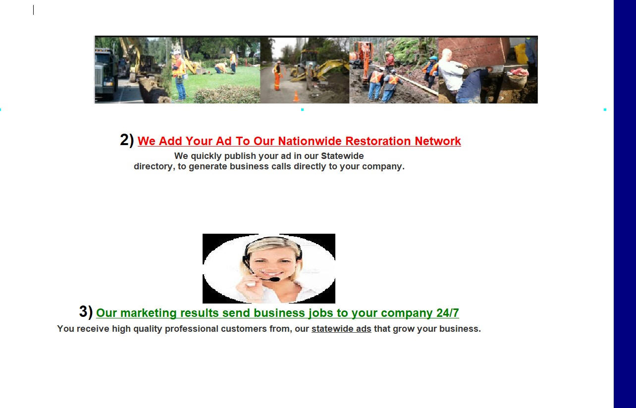 Strategy i Companies Experts Open now Online estimates Water Restoration Marketing | System Water Restoration Marketing Our water restoration marketing system gives you the opportunity to have r specific services. ‎Our Proven System · ‎About · ‎Client Results · Water Restoration Marketing  · Water Restoration Marketing 840+ followers Wondering if online marketing works for Water Restoration companies? Skeptical if marketing agencies can actually deliver result marketing strategies for a restoration business  · The Restoration Contractor key moments Creating a Target Marketing Plan for Your Restoration Company  · Restoration Made Simple 15 minutes, 26 seconds  key moments in this video How To Do Marketing For Water Damage Restoration Success  · 10 key moments in this video Feedback View all People also ask How to market water restoration? What is the profit margin for water restoration? What is water restore? What is water damage restoration? Feedback Restoration Marketing Group | Water Damage Marketing Restoration Marketing Group we help water, mold, & fire damage restoration companies consistently generate more leads and more jobs every month. 6 Marketing Strategies to Increase Your Restoration Company ...  › 6-restoration-.. — Classify your business properly for the services you offer - example "Water damage restoration service" or "Fire damage restoration service."e marketing my flood restoration company to ...I’m-gonna-be-marketing-my-... No. It's a good idea to contact a few flood restoration companies and start getting estimates. That way you will know if the figures which the ... The most effective “marketing” people that come to my office, are the ones that ... How To Create A Restoration Marketing Strategy Nomadic Advertising https:// Restorationprofessionalsdirectory.com › how-to-create-a-restor...  A marketing strategy for a water restoration company should aim to raise awareness about its services, establish credibility, and attract ... : Restoration Industry's #1 Internet Marketing & SEO ... Restoration Marketing Succes We are the go-to restoration marketing partner for fire, mold, & water damage companies. Schedule a free strategy session with ! Water Damage Marketing - Restoration Marketing HQ m Water Damage Marketing - Restoration Marketing HQ focuses on digital marketing for water damage, fire damage, storm damage and mold remediation companies. ‎Content Marketing · ‎Social Media Marketing · ‎Website Design & Developement Water Restoration Marketing: 3 Effective Growth Strategies Algorithmic › restoration-marketing — One of the most effective long-term water restoration marketing methods is content creation. Companies can showcase their expertise and connect ... Local Results Businesses Map Map data Flood & Restoration · Water damage restoration service Open 24 hours  · Water damage restoration services Onsite services Website Directions · Water damage restoration service 10+ years in business · Lake Elsinore, CAExcellent business that left me with no reason to not trust them in my ..." Website Directions More businesses People also search for Water restoration marketing strategy Water restoration marketing examples Water restoration marketing ideas Water restoration Marketing reviews Water restoration marketing companies Restoration Marketing Group Restoration marketing strategy Restoration digital marketing Results for  Lake Elsinore, CA  ∙ Choose area Search Results 6 Marketing Strategies to Increase Your Restoration Company ...  › 6-restoration-..— Classify your business properly for the services you offer - example "Water damage restoration service" or "Fire damage restoration service.". People also ask How to market for a restoration company? Feedback Things to know Cost…Fire damage restoration cost Guidelines…Fire damage restoration guidelines Ideas…Marketing ideas for restoration company How to start…How to start a fire restoration business 3 more Feedback How To Create A Restoration Marketing Strategy NomadicMaryland Barrington, RI - Rhode Island Birmingham, AL - Alabama Bismarck, ND - North Dakota Boise, ID - Idaho Boston, MA - Massachusetts Buffalo, NY - New York Charleston, SC - South Carolina Cheyenne, WY - Wyoming Chicago, IL - Illinois Cincinnati ,OH - Ohio Cleveland, Ohio - Ohio Columbus, OH - Ohio Dallas, TX - Texas Denver, CO - Colorado Des Moines , IA - Iowa Detroit, MI - Michigan Duluth, MN - Minnesota El Paso, TX - Texas Essex Junction, VT - Vermont Flagstaff, AZ - Arizona Fort Wayne, ID - Idaho Fort Worth ,TX - Texas Harris Burg, PA - Pennsylvania Hartford, CT - Connecticut Helena, MT - Montana Houston, TX - Texas Honolulu, HI - Hawaii Huntington, WV - West Virginia Indianapolis, ID - Indiana Jackson, MS - Mississippi Jacksonville, FL - Florida Kansas City, MO - Missouri Knoxville, TN - Tennessee Las Vegas, NV - Nevada Lexington, KY - Kentucky Little Rock, AR - Arkansas Los Angeles, CA - California Louisville, KY - Kentucky Mackinaw City, MI - Michigan Madison, WI - Wisconsin Memphis, TN - Tennessee Miami, FL - Florida Manchester, NH - New Hampshire Milwaukee, WI - Wisconsin Minneapolis, MN - Minnesota Mobile, AL - Alabama Nashville, TN - Tennessee New Orleans, LA - Louisiana Atlantic City, NJ - New Jersey New York, NY - New York Norfolk, VA - Virginia Oklahoma City, OK - Oklahoma Omaha, NE - Nebraska Orlando, FL - Florida Philadelphia, PA - Pennsylvania Phoenix, AZ - Arizona Pierre, SD - South Dakota Pittsburgh, PA - Pennsylvania Portland, ME - Minnesota Portland, OR - Oregon Raleigh, NC - North Carolina Rapid City, SD - South Dakota Reno, NV - Nevada Richmond, VA - Virginia Rochester, NY - New York St Louis, MO - Missouri Salt Lake City, UT - Utah San Antonio, TX - Texas San Diego, CA - California San Francisco, CA - California Seattle, WA - Washington Spokane, WA - Washington Springfield, IL - Illinois Springfield,